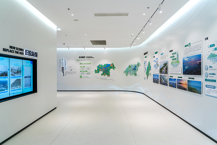 長三角生態(tài)綠色一體化發(fā)展示范區(qū)吳江區(qū)展示館項目位于蘇州市吳江區(qū)吳江大廈南廣場,項目面積1330平方米,為設(shè)計、采購、施工工程總承包。展示長三角一體化發(fā)展戰(zhàn)略提出以來,吳江地區(qū)的堅決貫徹與生動實踐,展現(xiàn)吳江地區(qū)結(jié)合地方實際的特色工作與顯著成績。本項目為改建項目,金螳螂文化團隊對場地進行考察,對現(xiàn)有設(shè)備進行拆除及合理應(yīng)用,綜合考慮使用效果、投入成本、展陳更新等多方面要求。