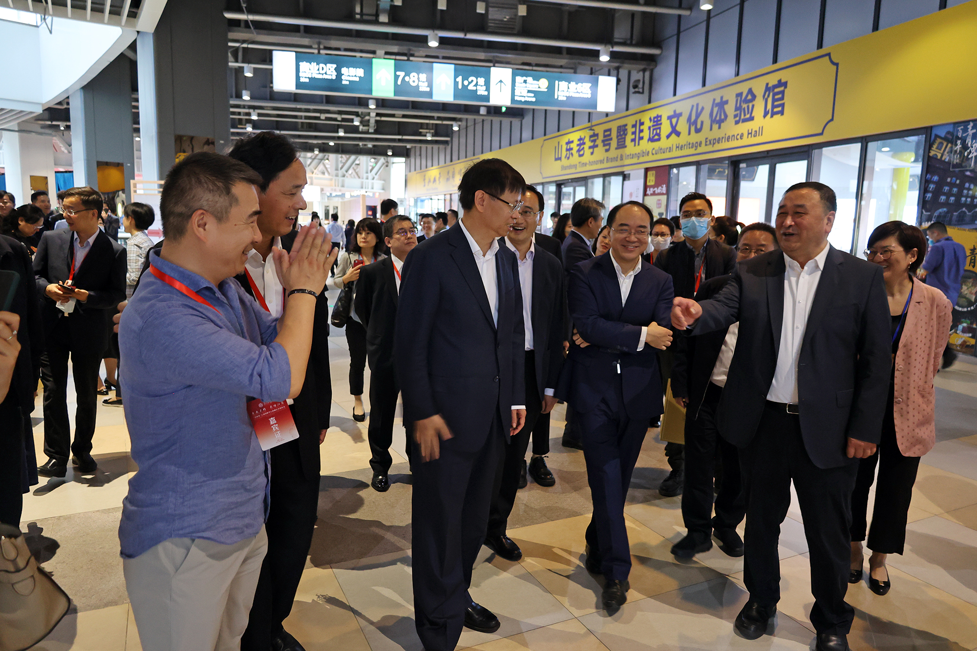商務部駐南京特派員王選慶,商務部進博局副局長、國展中心董事長孫成海,上海虹橋商務區管委會黨組書記、常務副主任閔師林,日本國駐上海大使銜總領事磯俁秋男,大韓民國駐上海總領事金勝鎬,意大利駐滬總領事陳琪以及上海市、江蘇省有關部門負責同志,蘇州市領導黃愛軍、金潔、顧海東、楊知評、王飏,市政府秘書長周偉,各縣級市(區)和市有關部門主要負責同志,首批入駐“蘇作館”的中國工藝美術大師、非遺傳承人代表等參加活動。